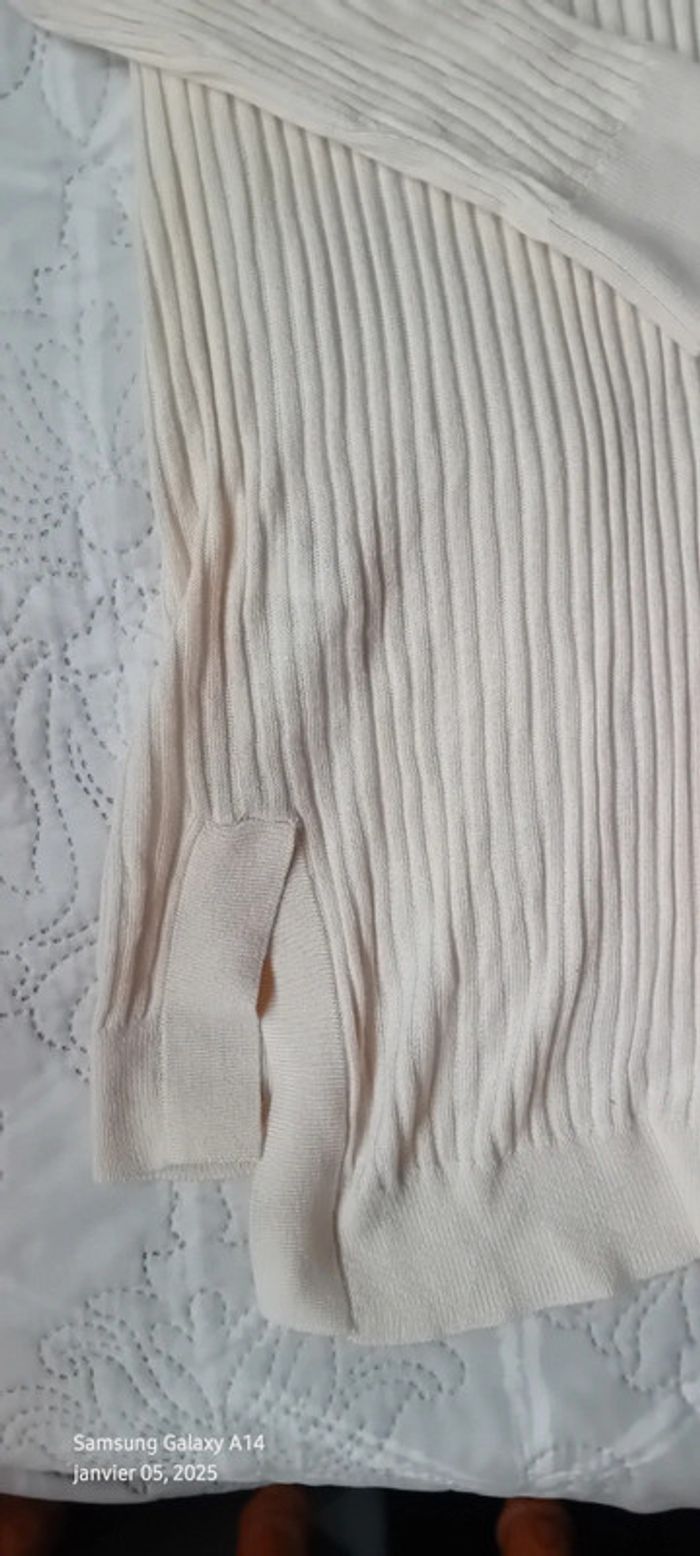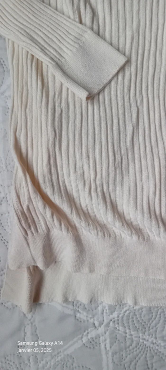 Pull tunique très fin maille côtelée col V crème femme L la redoute - photo numéro 4