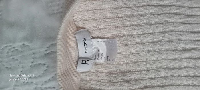Pull tunique très fin maille côtelée col V crème femme L la redoute - photo numéro 14