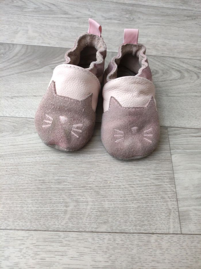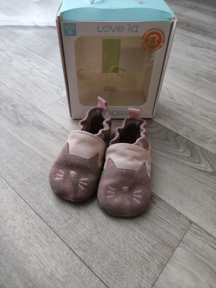 Chaussons cuir bébé obaibi chat rose 6/12mois - photo numéro 1