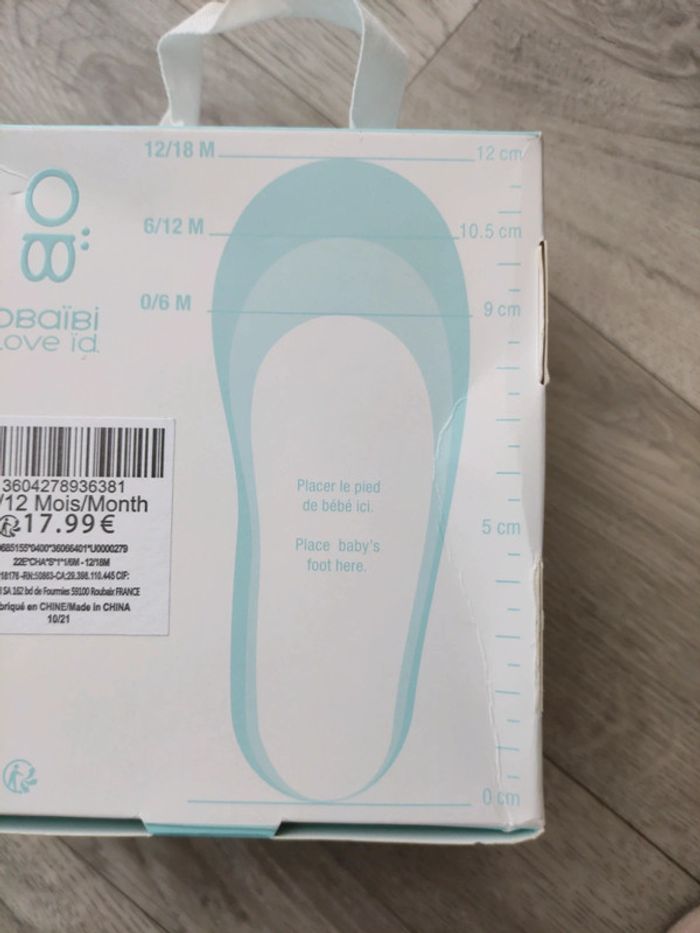 Pour bébé 6/12mois ou 10.5cm cf photo mesure Vendu avec la boîte Très bon état, pas de défauts , a nettoyer , c'est du cuir retourné mon cordonnier n'a pas su me conseiller... D'autres articles ici et remise sur les lots #nadou8763_chaussuresbebe