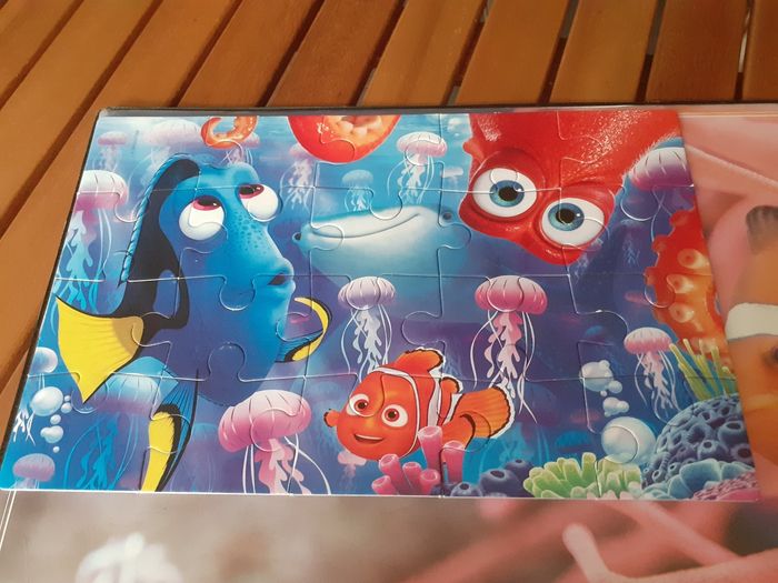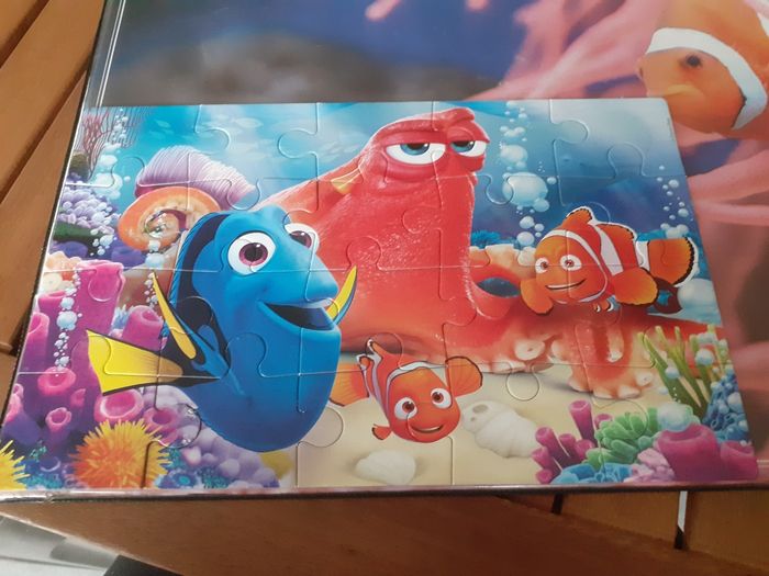 Boite de 2 Puzzles nemo , en bon état. Il y a des marques au dos des pièces pour facilités le tri des puzzles.