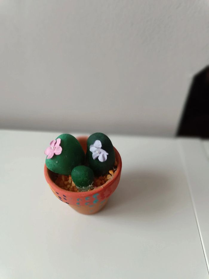 Petit pot en terre cuite fait main déco cactus - photo numéro 1