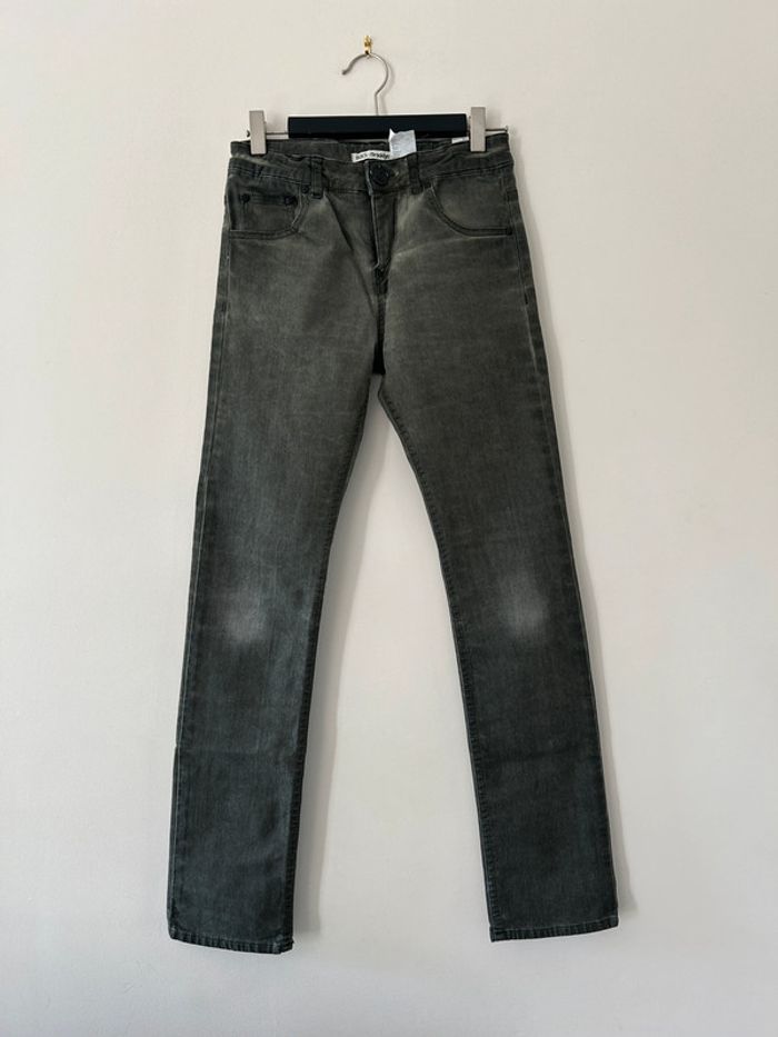 Joli pantalon denim kaki Taille ajustable Légère usure aux genoux, mais cela n'est pas gênant et peut même donner un style en très bon état général pour le reste très peu porté