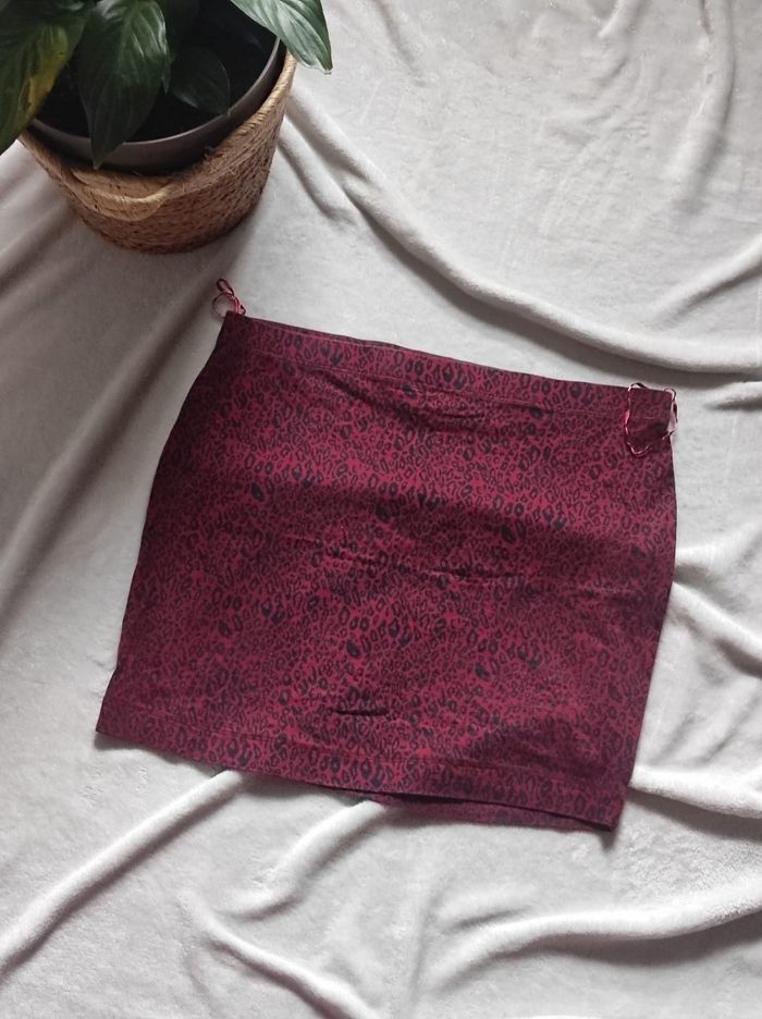 mini jupe imprimée léopard rouge & noire. De la marque kiabi en taille L. Peu portée.