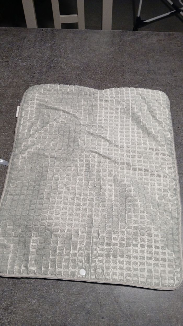 Tapis absorbant gris, ideal pour la vaisselle, dimensions 46 cm x 38,5 cm. Avec un pression. Très bon état, 100 % polyesther