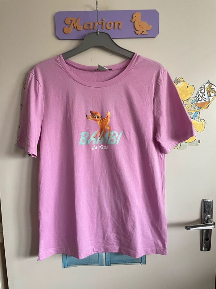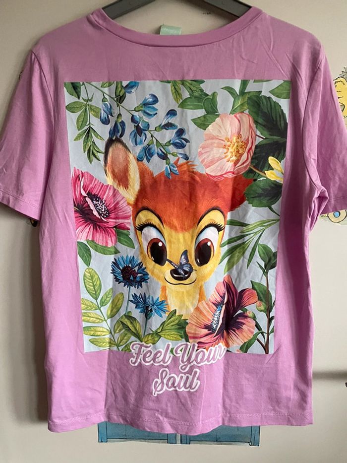 Tee shirt à manches courtes rose avec magnifiques motifs Bambi, taille S, marque Zara x Disney - photo numéro 2