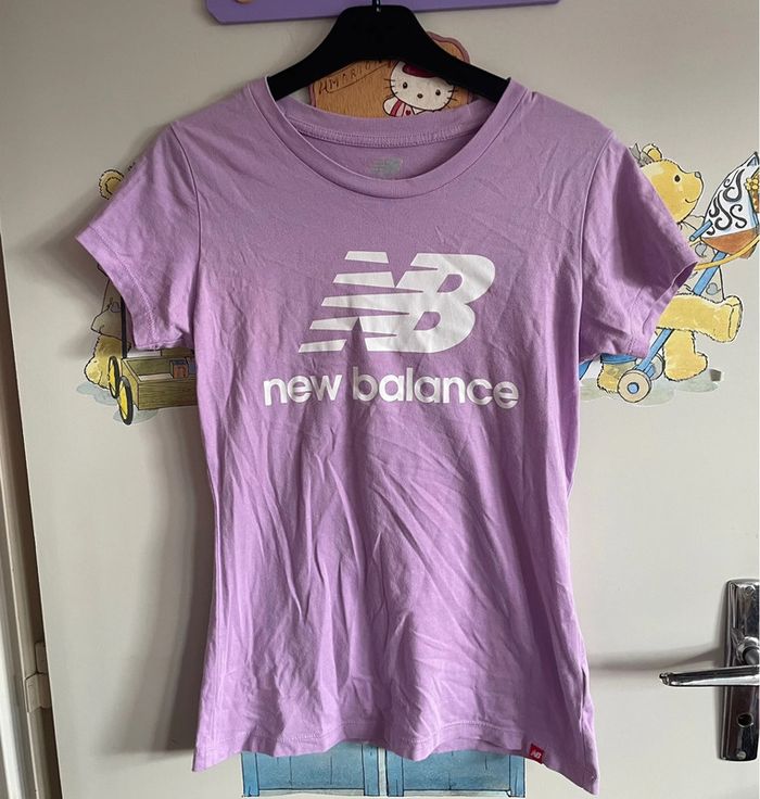 Tee shirt à manches courtes mauve-lilas, taille Xs, marque New Balance - photo numéro 1