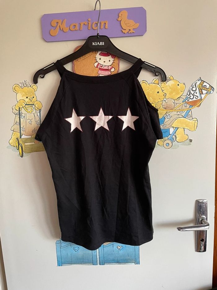 Tee shirt à épaules découvertes noir à motifs, taille Xs, marque Jennyfer