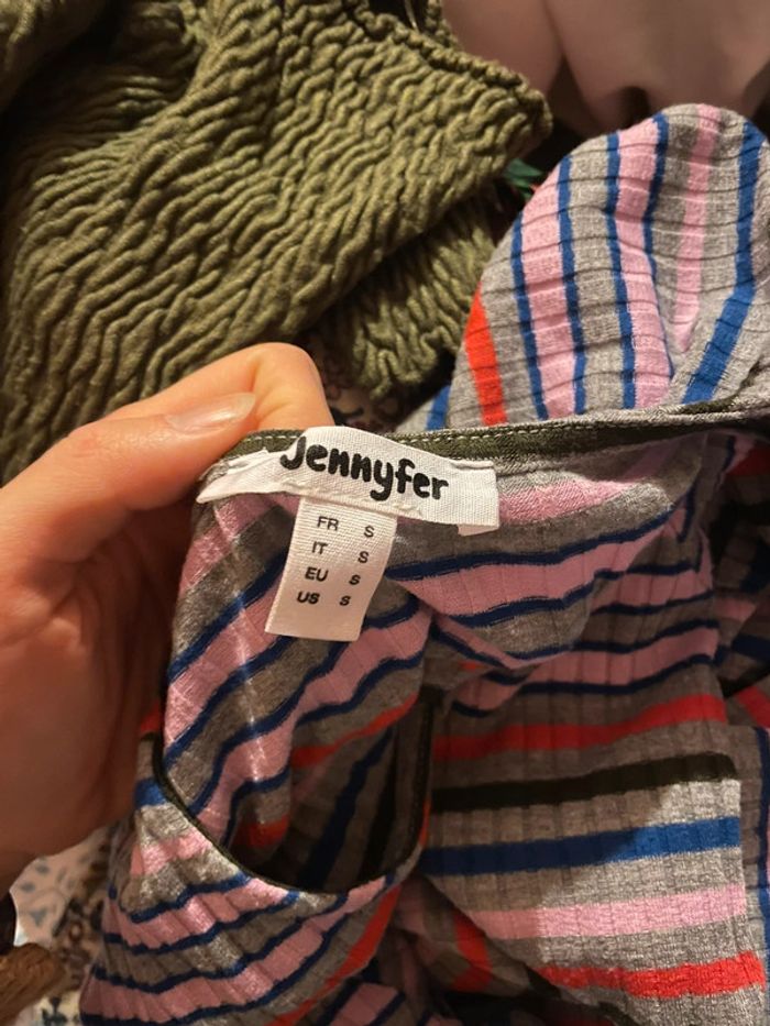 Top coloré à rayures avec ouverture aux manches, taille S, marque Jennyfer