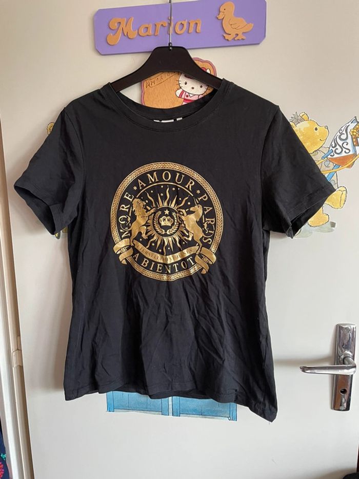 🌸 Tee shirt à manches courtes noir à motifs dorés 🌸 Taille S 🌸 Marque H&M 🌸 Très bon état