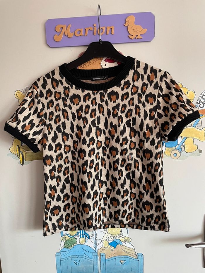 🌸 Tee shirt épais à manches courtes à motif léopard 🌸 Taille S 🌸 Marque Gemo 🌸 Neuf avec étiquette