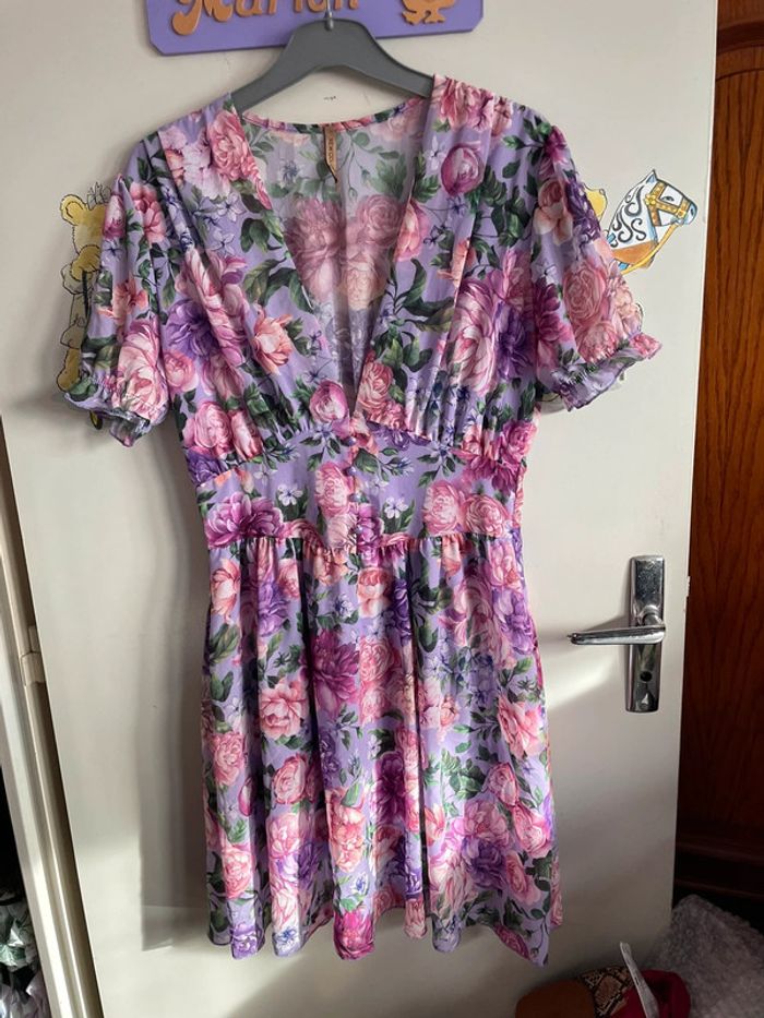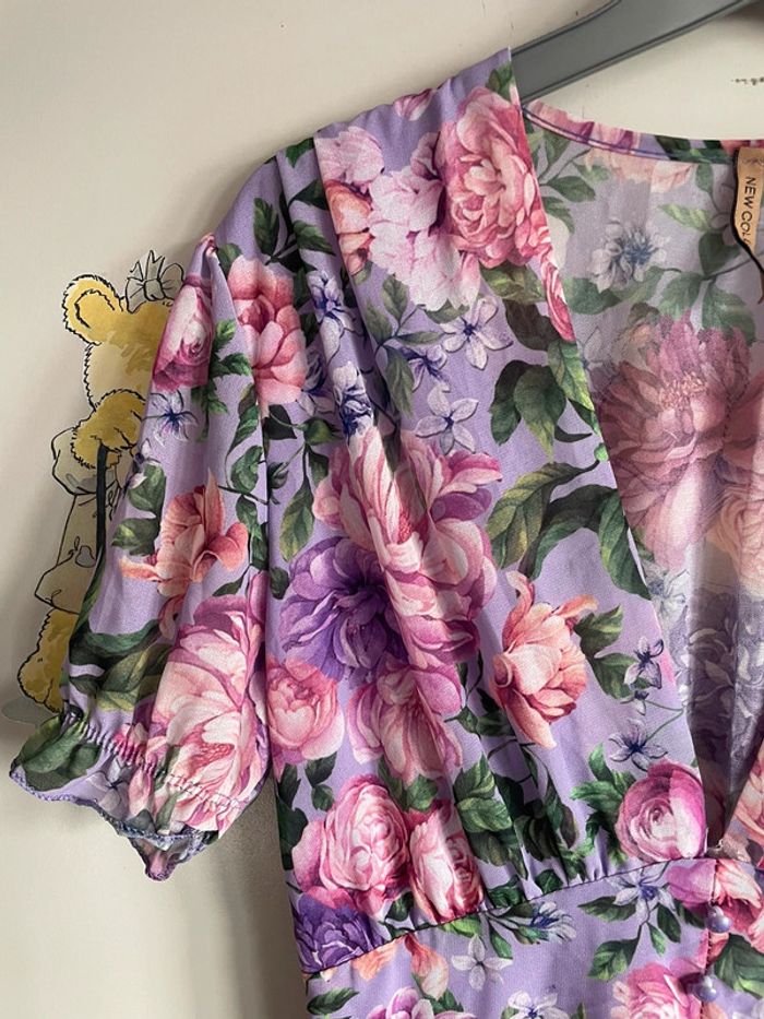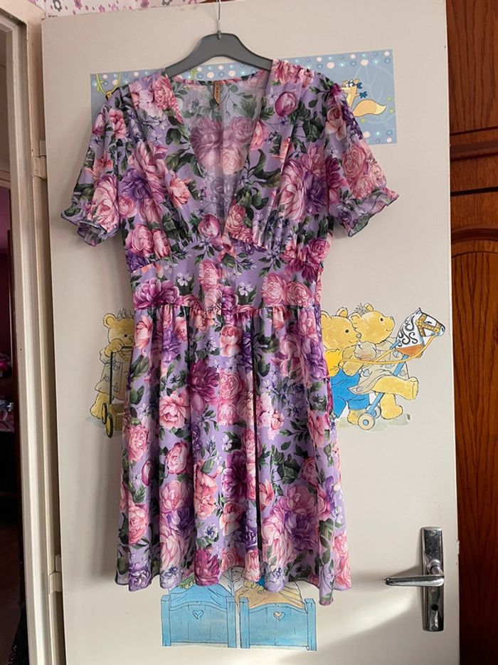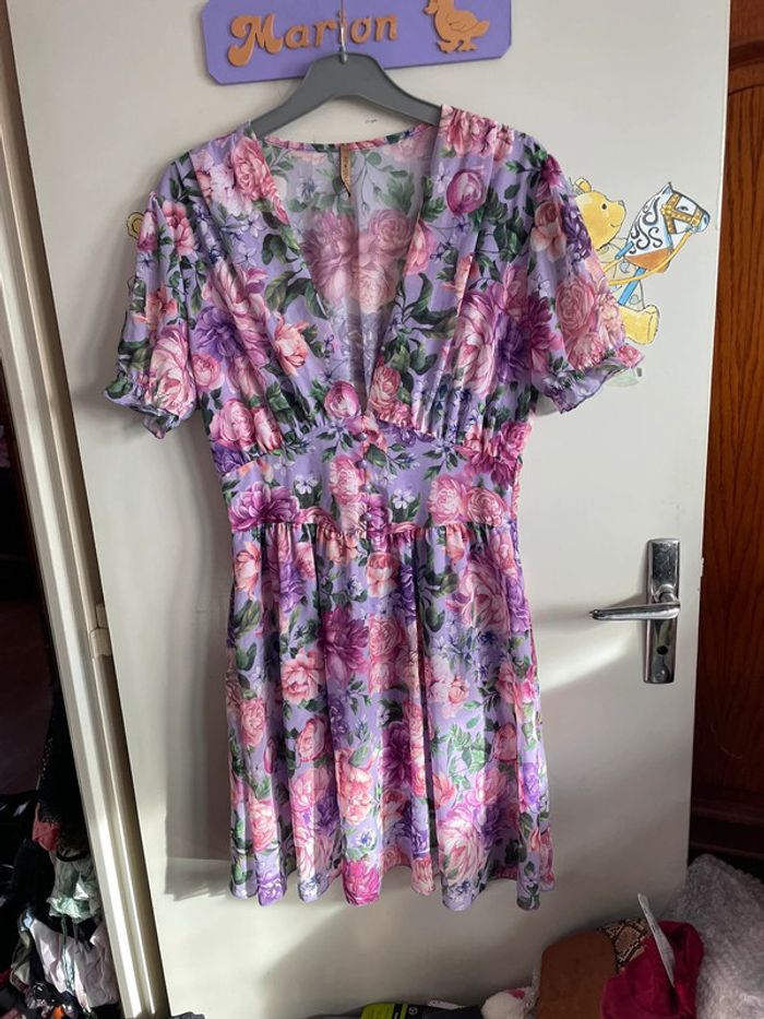 Magnifique robe à manches courtes mauve à fleurs, taille unique, marque New Collection - photo numéro 8