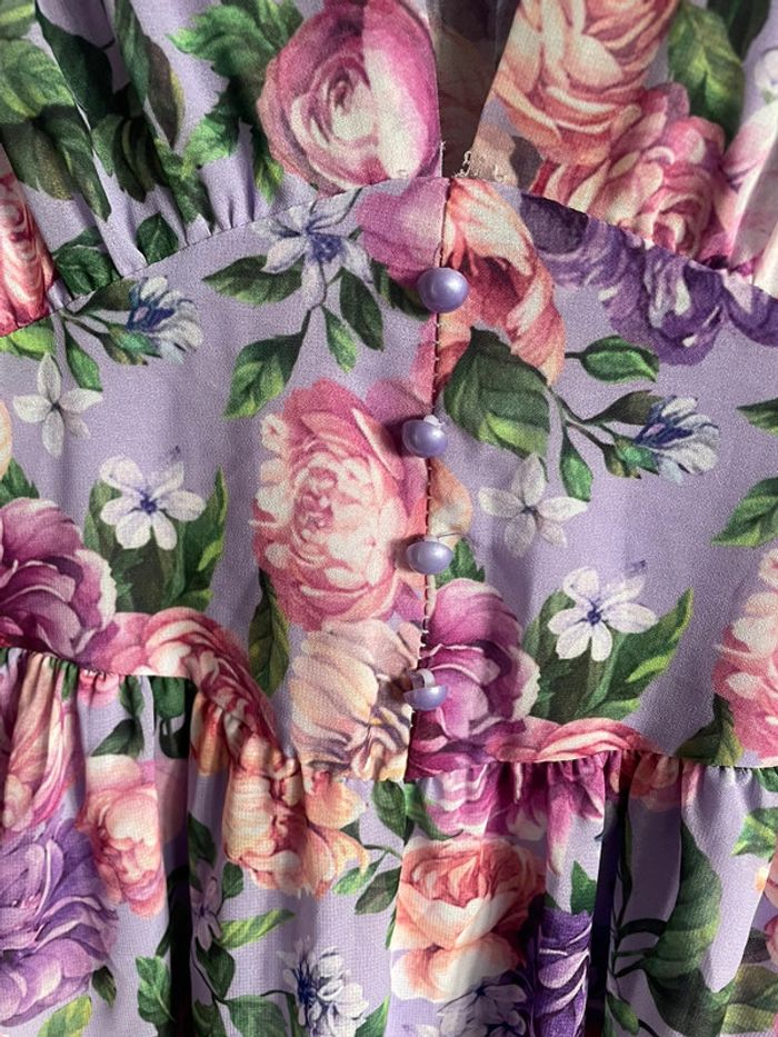 Magnifique robe à manches courtes mauve à fleurs, taille unique, marque New Collection - photo numéro 7