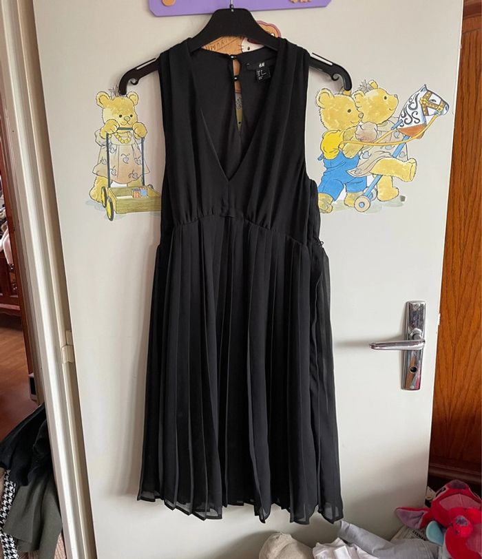 Robe noire plissée col v, taille 34, marque H&M - photo numéro 1