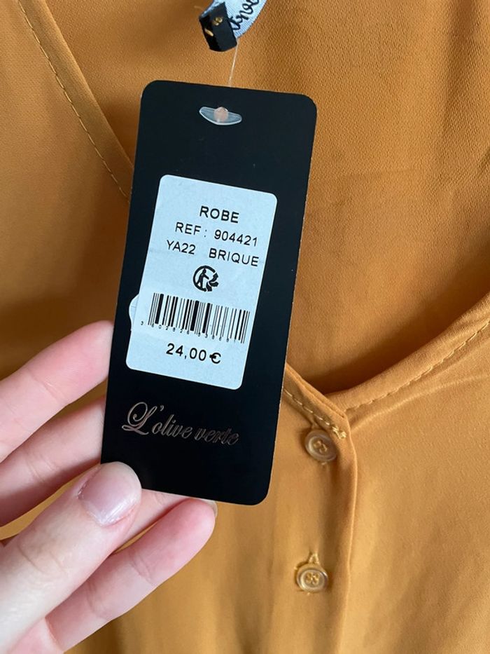 🌸 Robe jaune moutarde à manches longues 🌸 Sur l’étiquette il est indiqué couleur brique mais elle est bien jaune moutarde 🌸 Taille unique, il n’y a pas l’étiquette de taille 🌸 Marque L’olive Verte 🌸 Neuve avec étiquette, étiquetée a 24€
