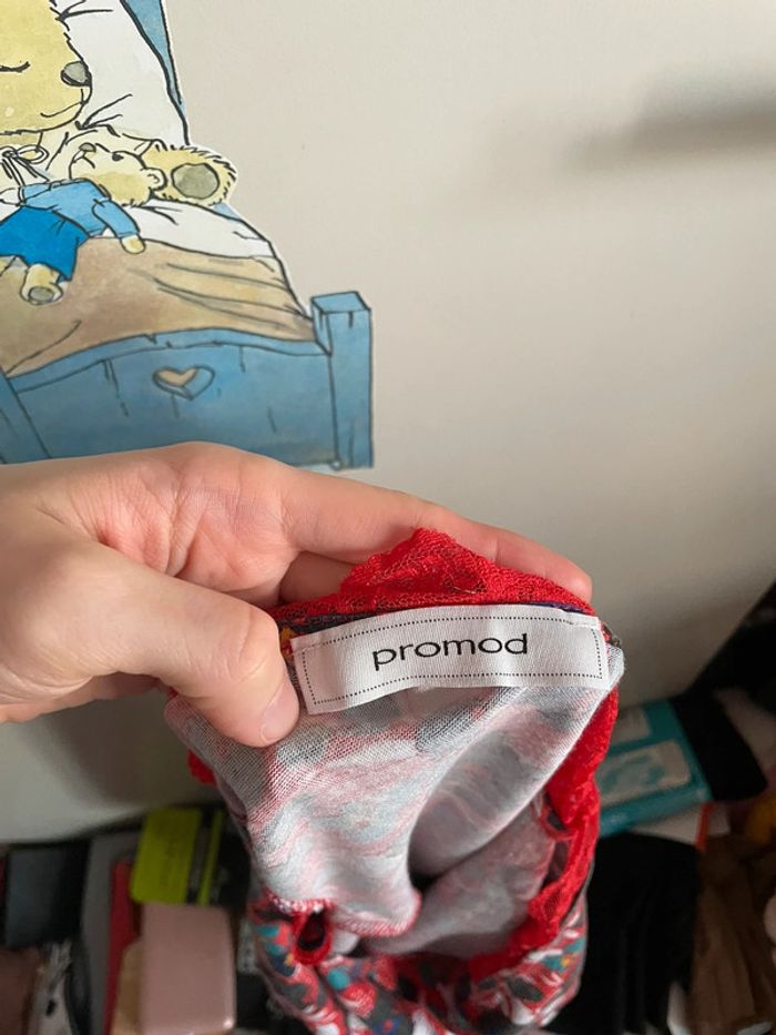 Tee shirt à manches courtes rouge à motifs avec joli détail dans le dos, taille M, marque Promod - photo numéro 6