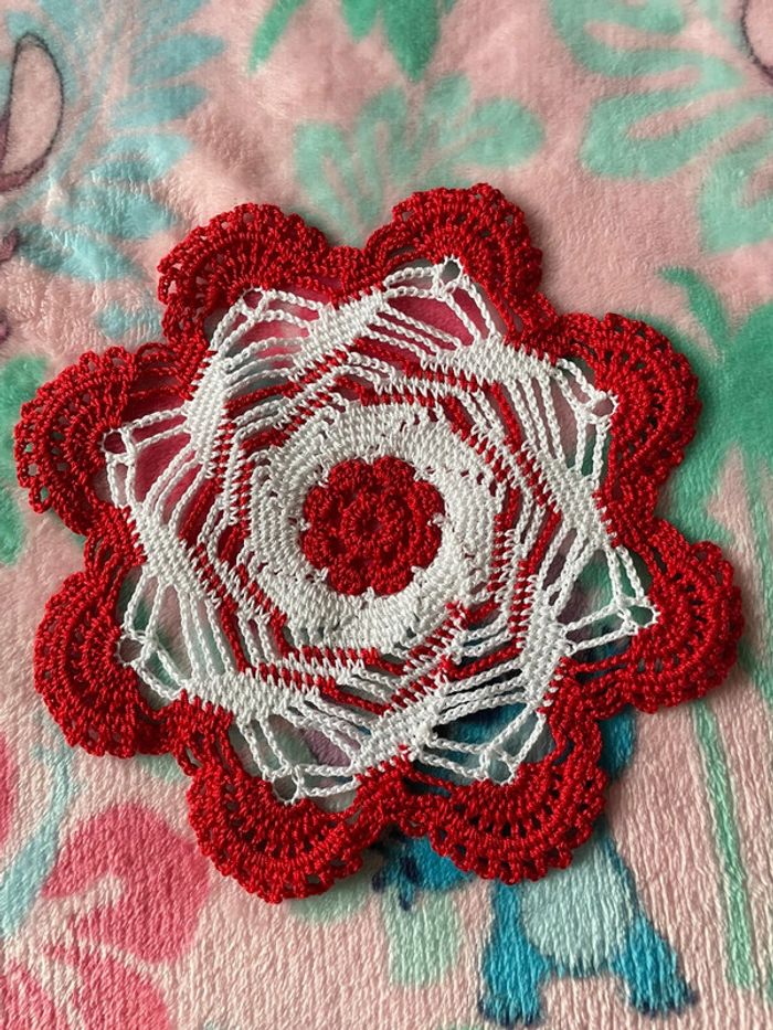 🌸 Napperon rouge et blanc 🌸 Fait à la main