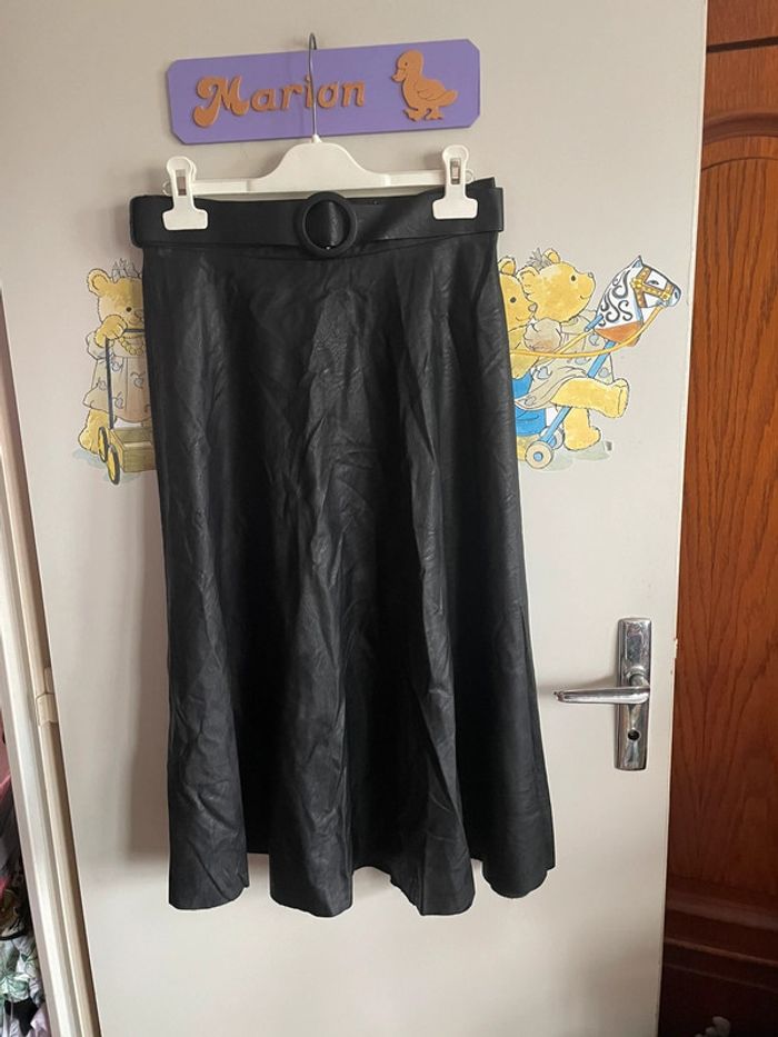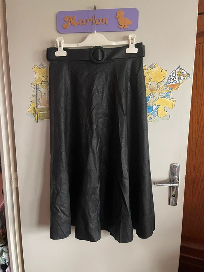 Jupe noire mi-longue avec ceinture effet simili cuir, taille M, marque New Collection - photo numéro 1