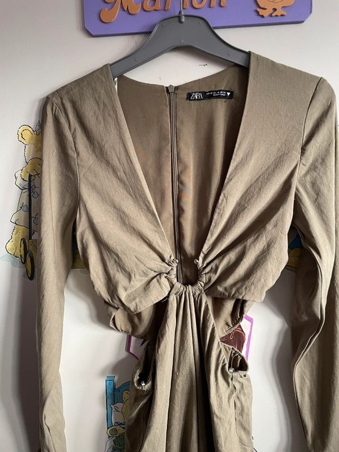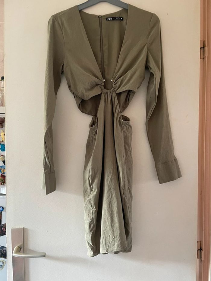 Magnifique robe kaki à manches longues ouverte sur les côtés, taille Xs, marque Zara - photo numéro 7