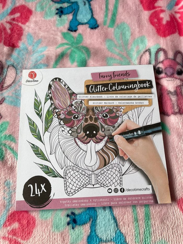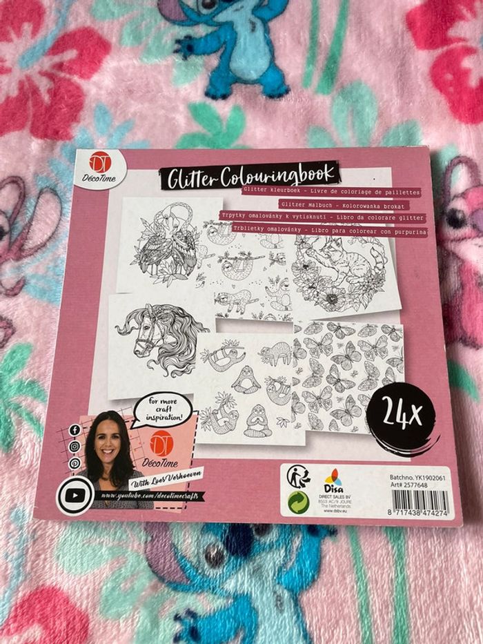 🌸 Livre de coloriages à paillettes 🌸 Un coloriage fait et une page ou la page de derrière à déteint