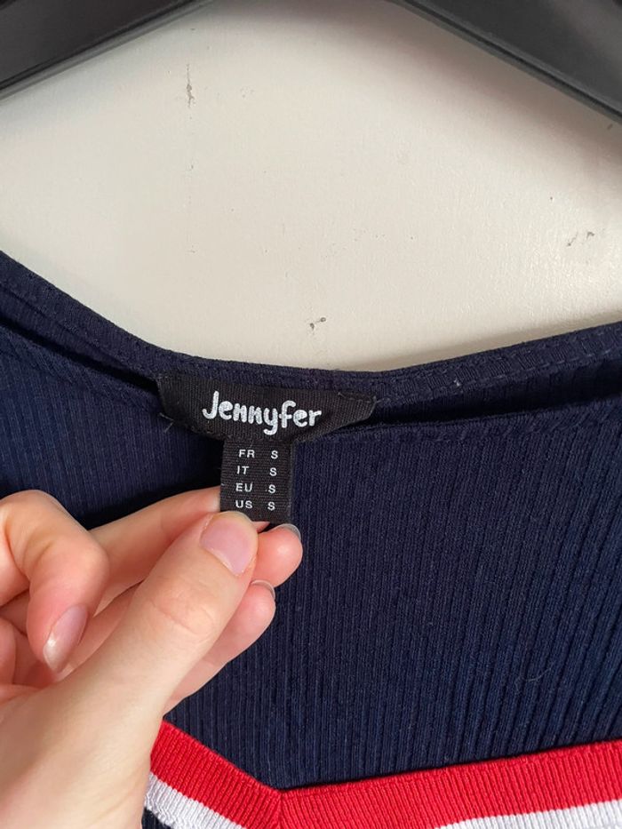 Tee shirt à manches longues évasées bleu marine à motifs, taille S, marque Jennyfer - photo numéro 2