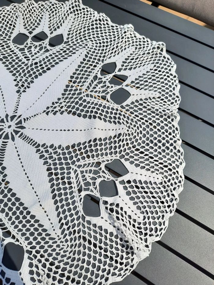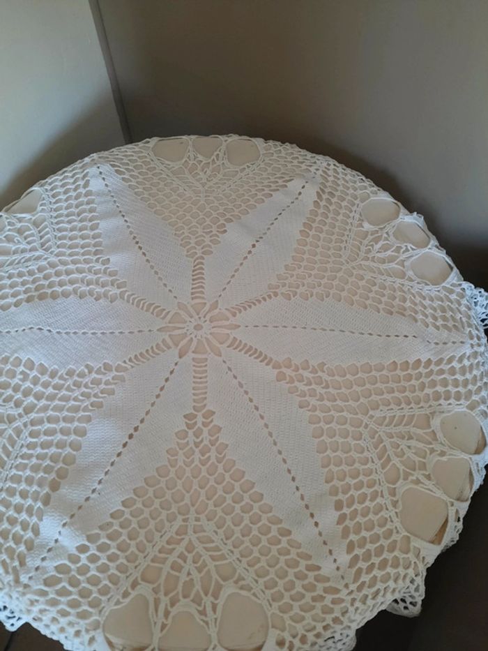Nappe ancienne vintage en dentelle de coton . Couleur crème, non jaunit. Propre ,sans tache ,sans défaut 👍👍👍 Diamètre 78 cm N hésitez pas à visiter mon profil et laissez vous guider par mes différents # #clementine13430vintage #nappeancienne #nappevintage #decovintage