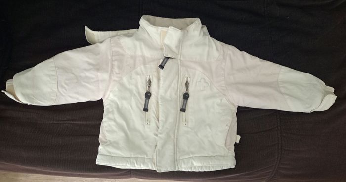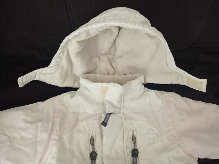 Veste fille Longboard 2 ans blanche et rose, doublure polaire. 2 petites taches qui ne sont pas parties au lavage, voir 2 dernières photos