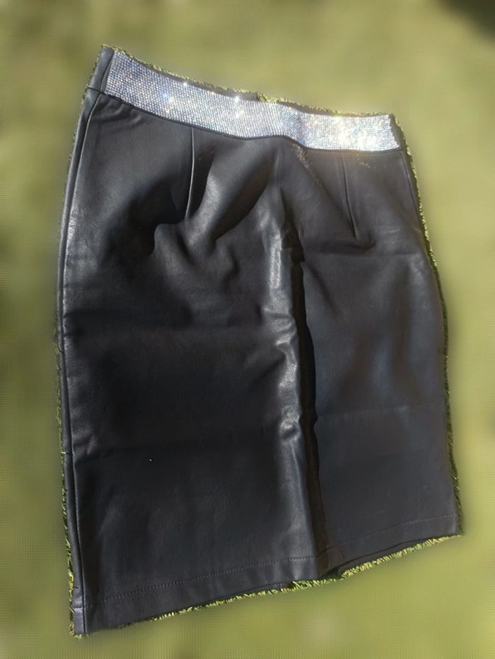 Jupe courte taille 38 Simili cuir et Strass Acheté dans une boutique en centre ville d'Ajaccio pour les fêtes mais un peu serré sur moi, je ne l'ai porté que quelques heures. Profitez de 50% sur mon dressing #jupecourte #taille38 #soiree #evenement #fete #boutiqueindependante