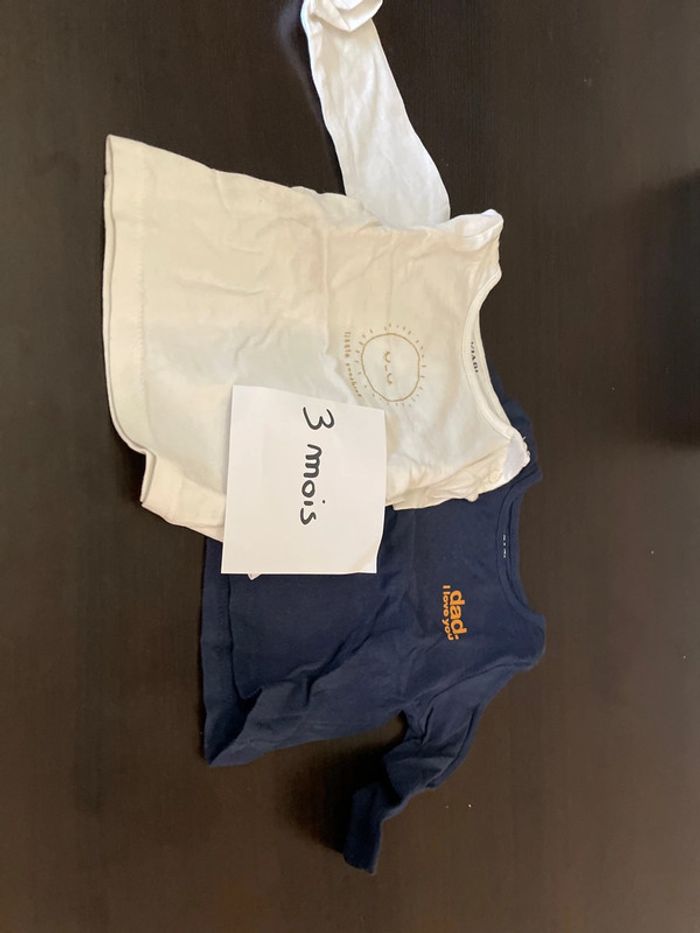 2 teeshirt manche longue Marque: kiabi Taille: 3mois Hésiter pas à faire des lot je ferais de prix #bébé #teeshirt #mixte