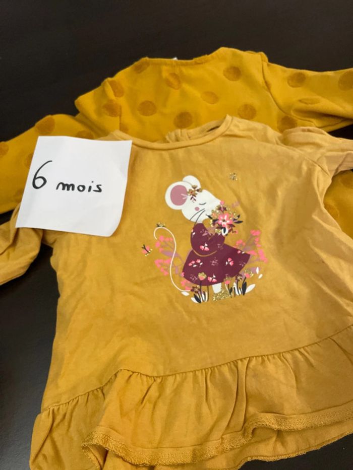 2 tunique couleur moutarde Marque: orchestra, inextenso Taille: 6mois Hésiter pas à faire des lots je ferais des prix #bébé #moutarde #tunique #fille