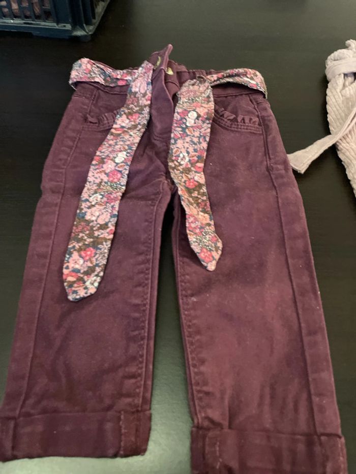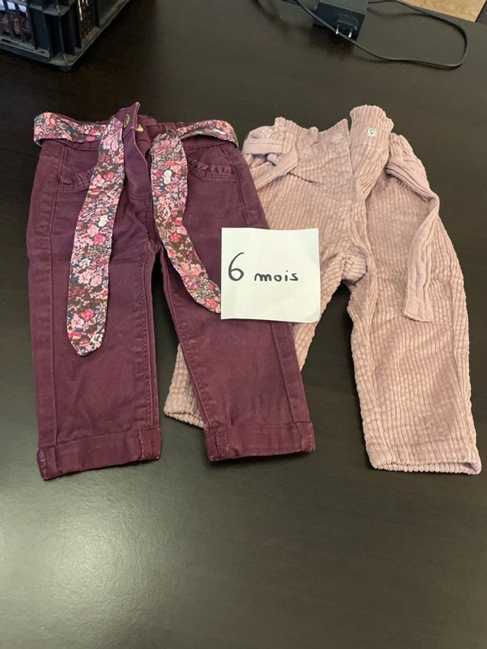 1pantalon jeans couleur bordeaux 1 pantalon velours couleur rose Marque: tape à l’œil et kiabi Taille: 6mois Hésiter pas à faire des lots je ferais des prix #bebe #pantalon #fille