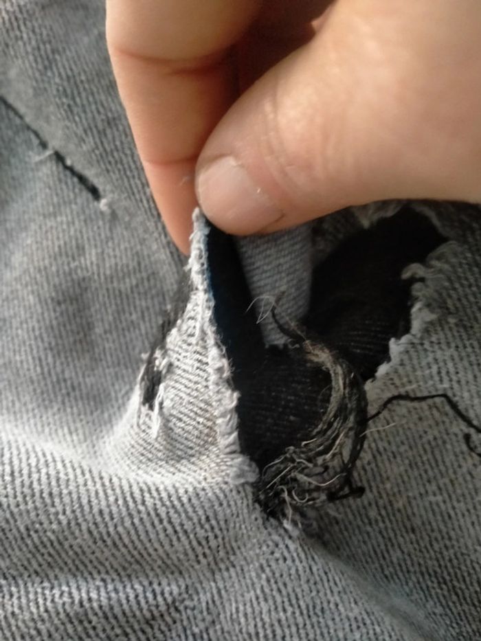Tissaia Pantalon à trous de base, qui se sont agrandis avec le temps. J'ai réparé à deux endroits déjà. #nanane77enfant8ans