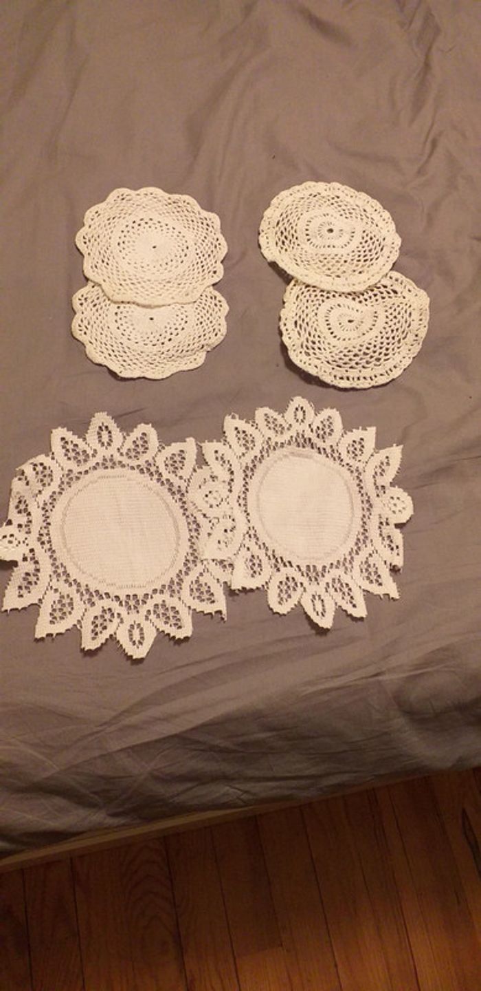 3 lots de 2 napperons Les petits 1.50 € le lot et les grands 2.50 € le lot Ou 5 € l'ensemble
