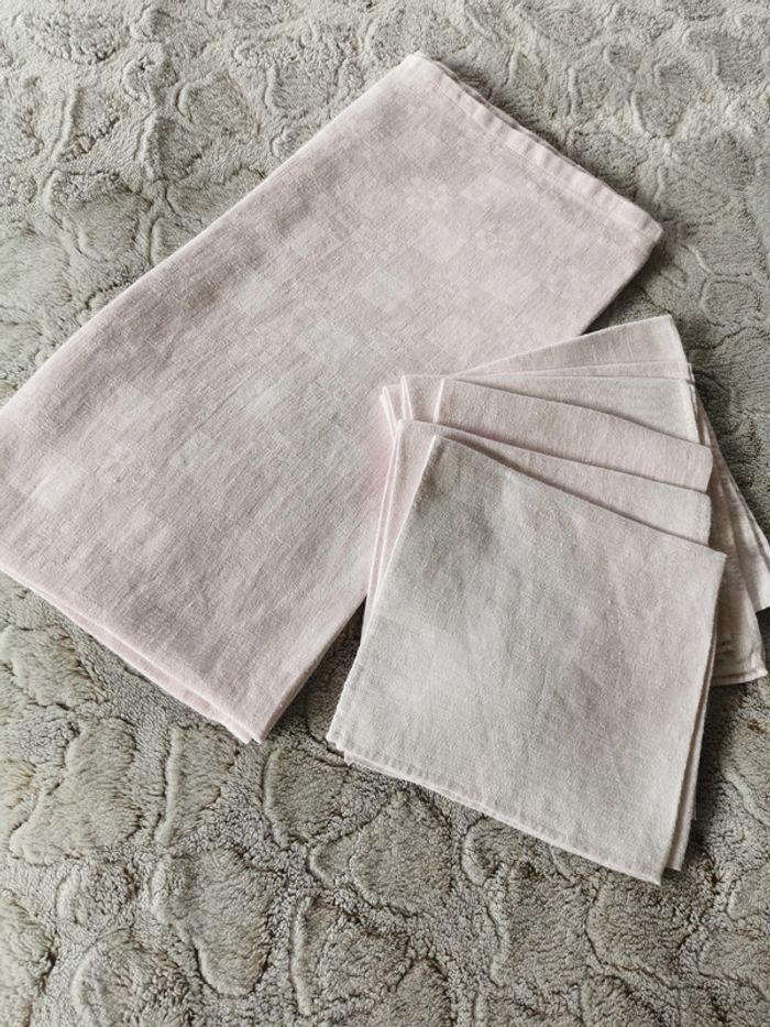 Napperon et serviettes de table rose à carreaux vintage - photo numéro 1