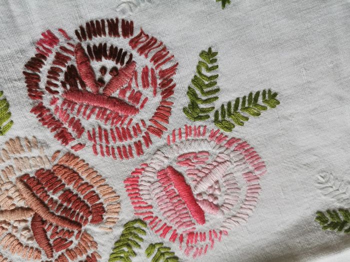 Napperon réctangulaire  ancien en coton blanc brodé - photo numéro 2