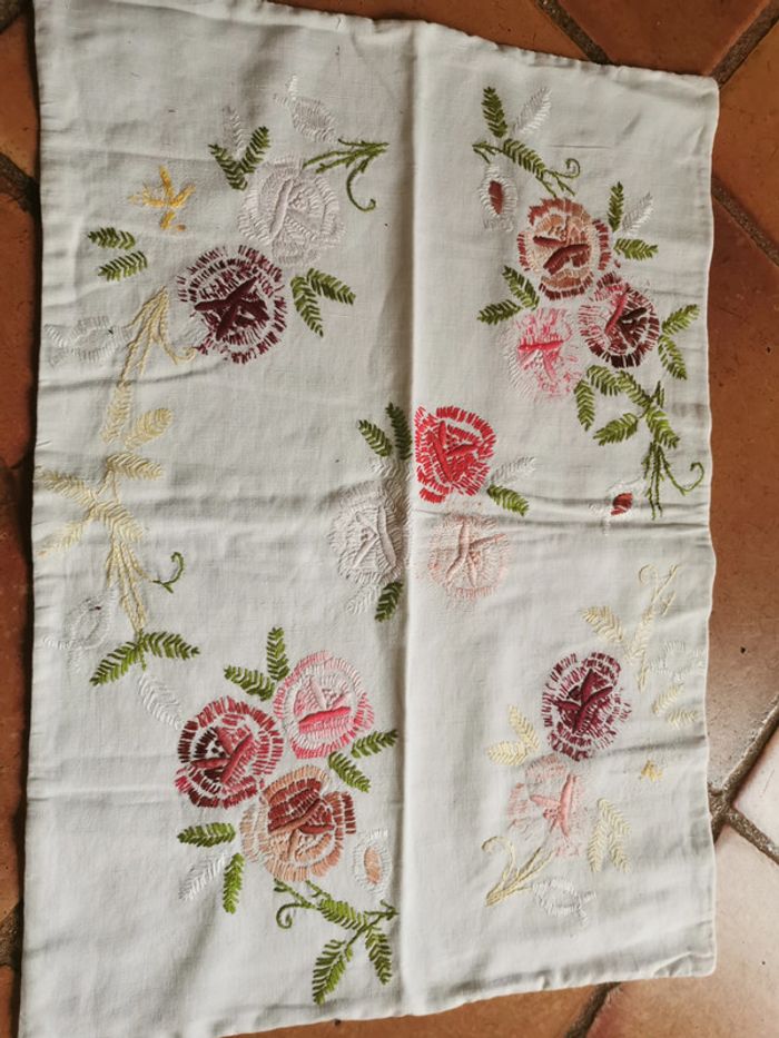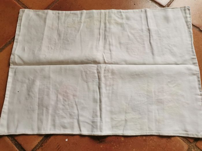 Napperon réctangulaire doublé ancien en coton blanc brodé, en très bon état général, vintage, taille 59x42 cm, poids 93g #napperonancien #napperonbrode #napperonvintage