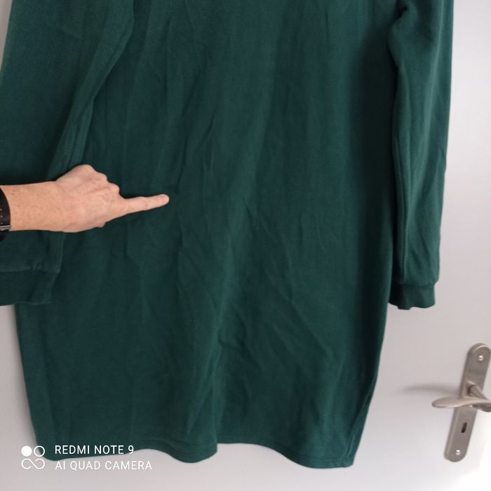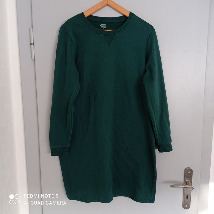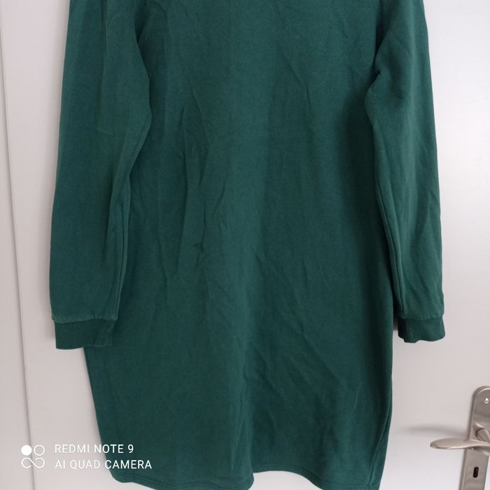 Une ou deux petites taches voir photos. Je ne connais pas la matière car l étiquette est coupée. Je pense que c'est du coton. Longueur : 94cm.