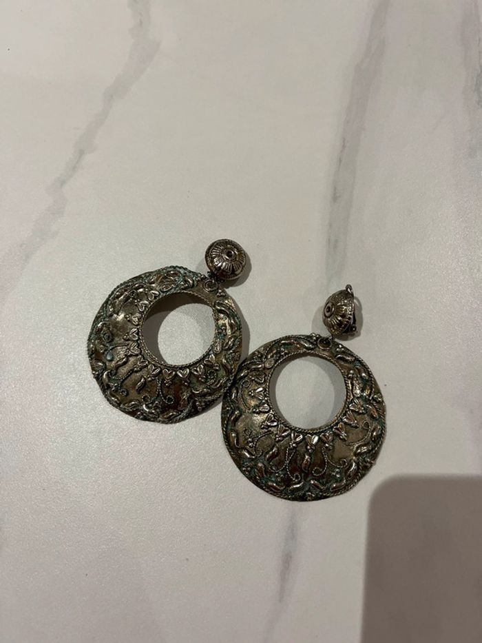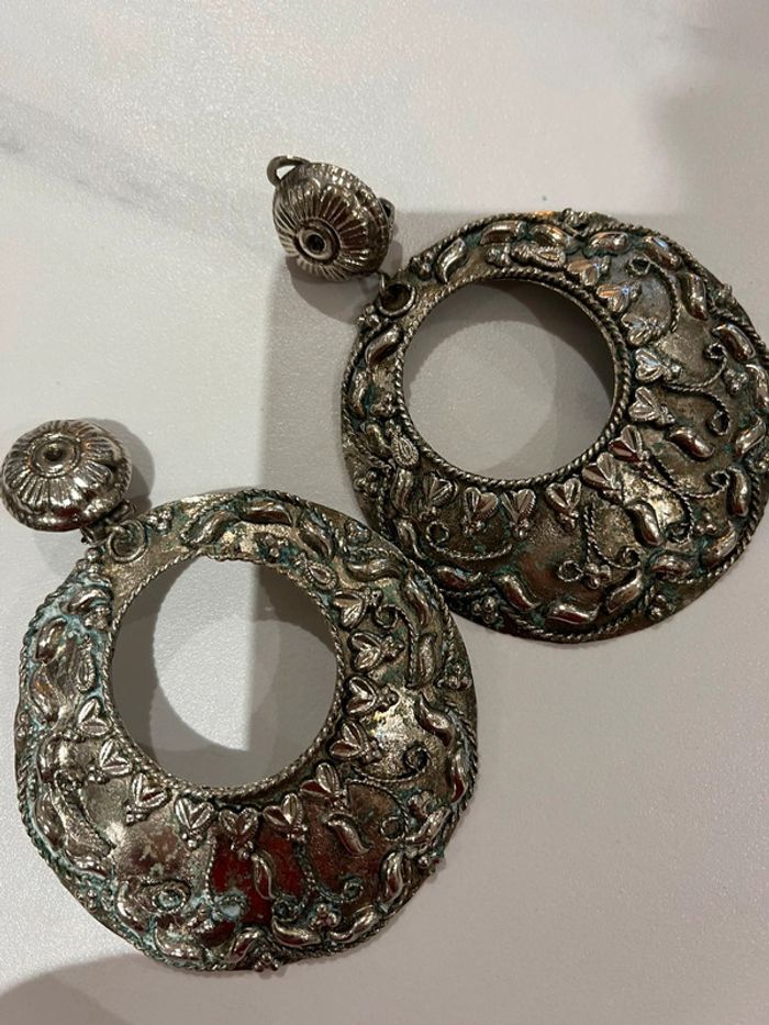 Grosses créoles façon argent vieilli Fabrication artisanale