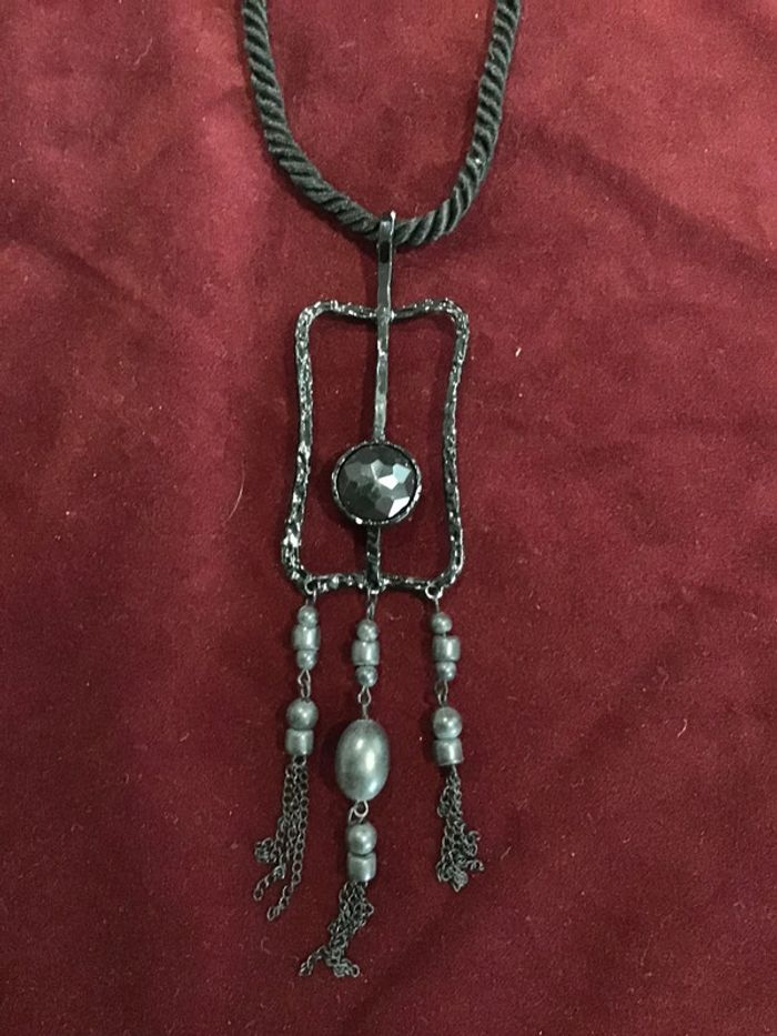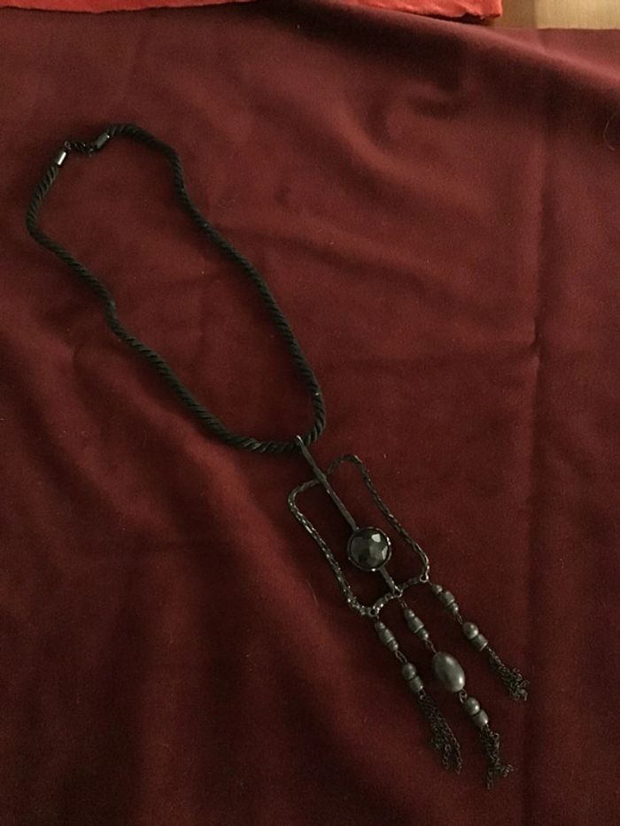 Joli collier cordon noir vintage. Année 90 - photo numéro 1