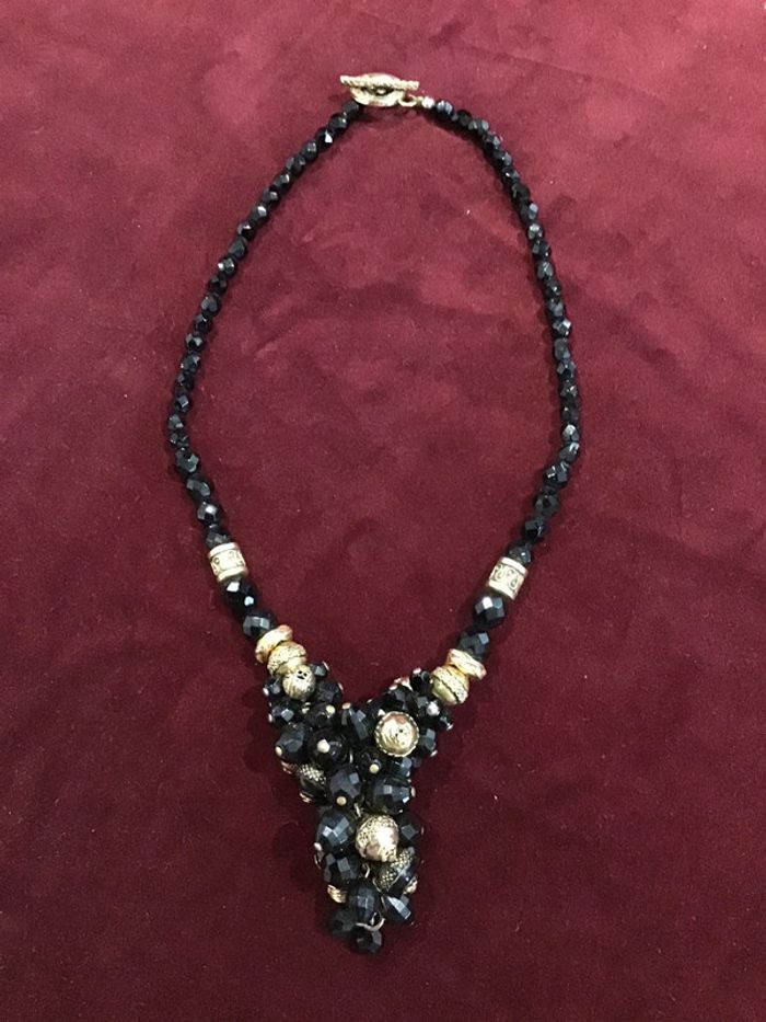 Bijou de créateur Perles noires facettées et perles dorées ouvragées Superbe rendu