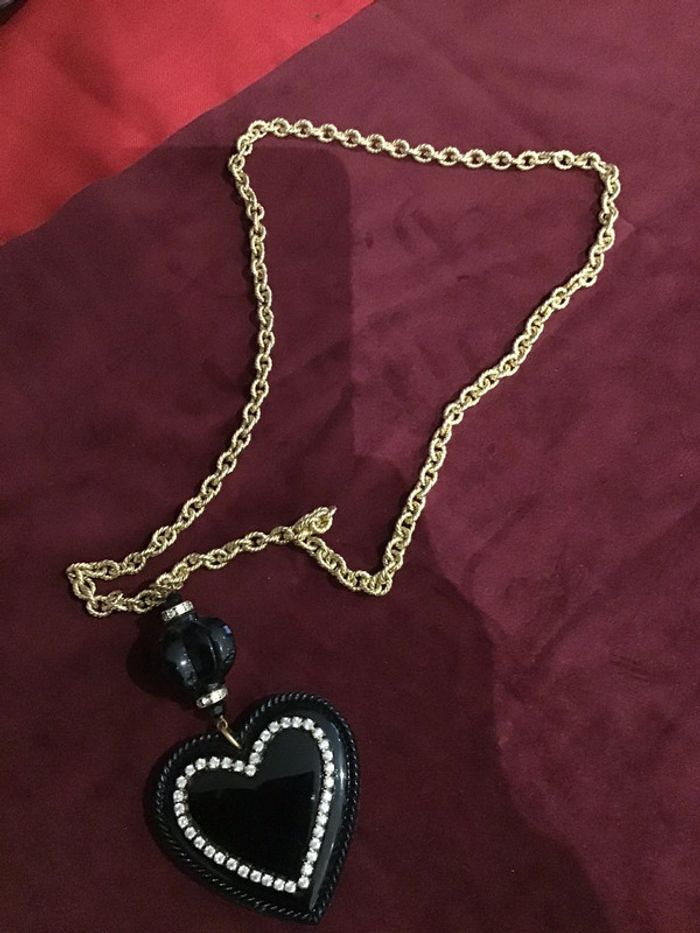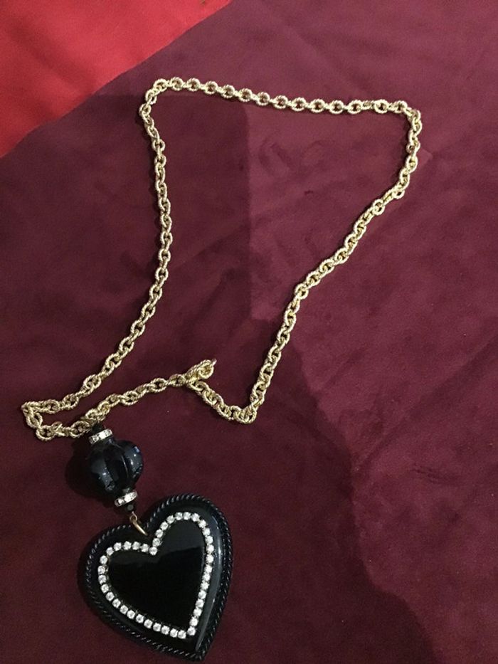Belle chaîne maille dorée ornée d’une perle facette soutenant un important cœur avec brillants Magnifique rendu