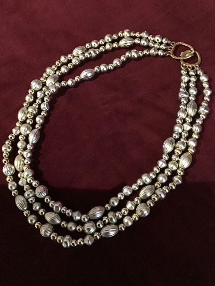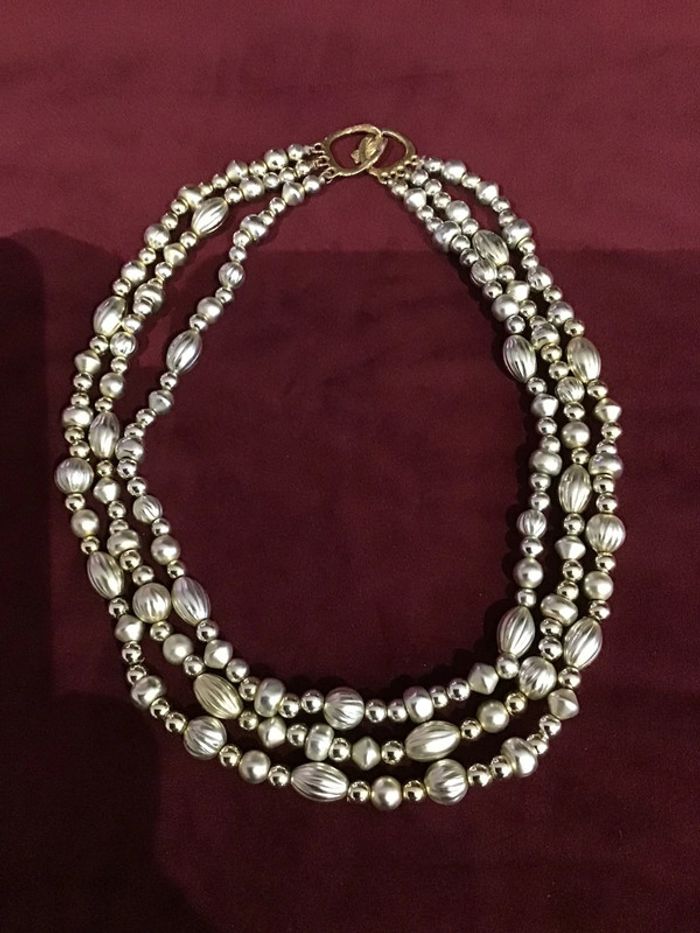 Trois rangs de perles ouvragées dorées Jolie fermeture facile Léger à porter