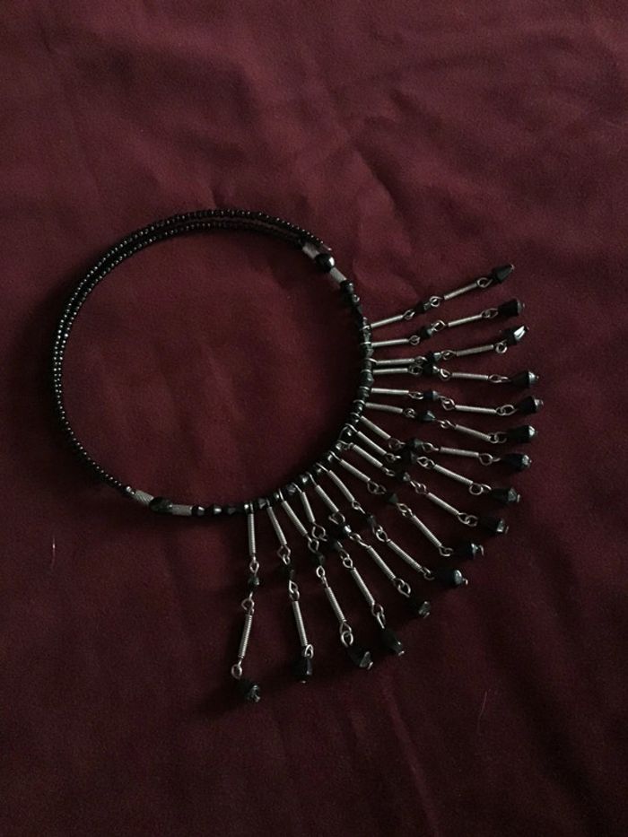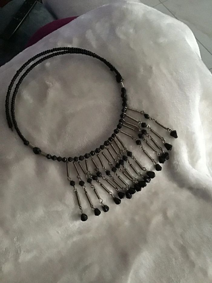 Années 90 Extensible s’adapte à tous les cous. Pendants assemblage petites perles noires et Ornements façon ressorts. Beau rendu