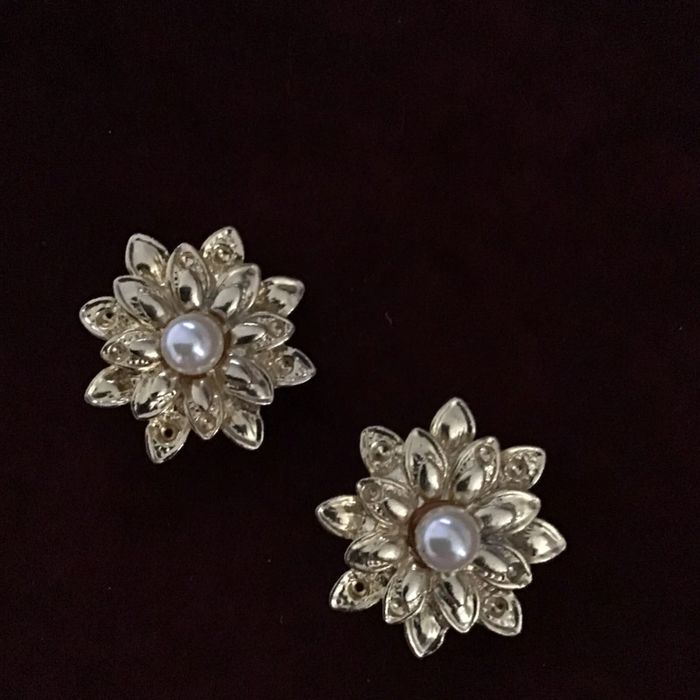 Très belles montures dorées pétales reliefs ouvragés ornés d’une perle centrale façon culture Superbe rendu