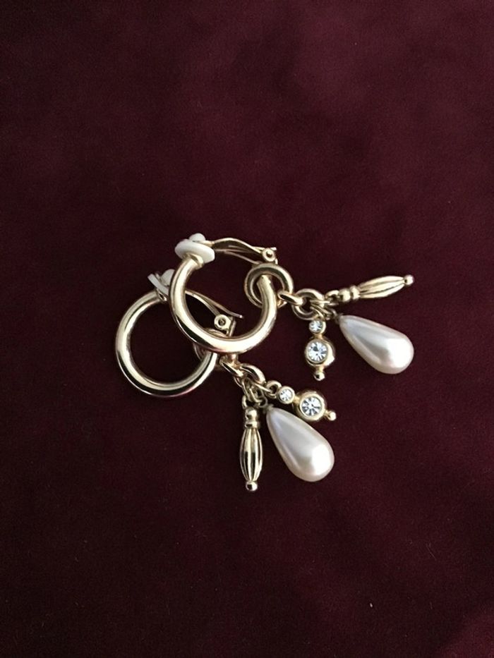 Clips petits anneaux ornés de trois pendants breloques avec perles et brillants Monture dorée Superbe rendu