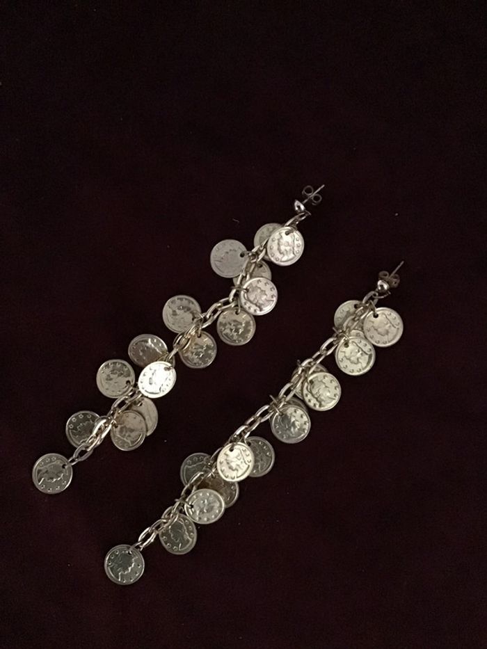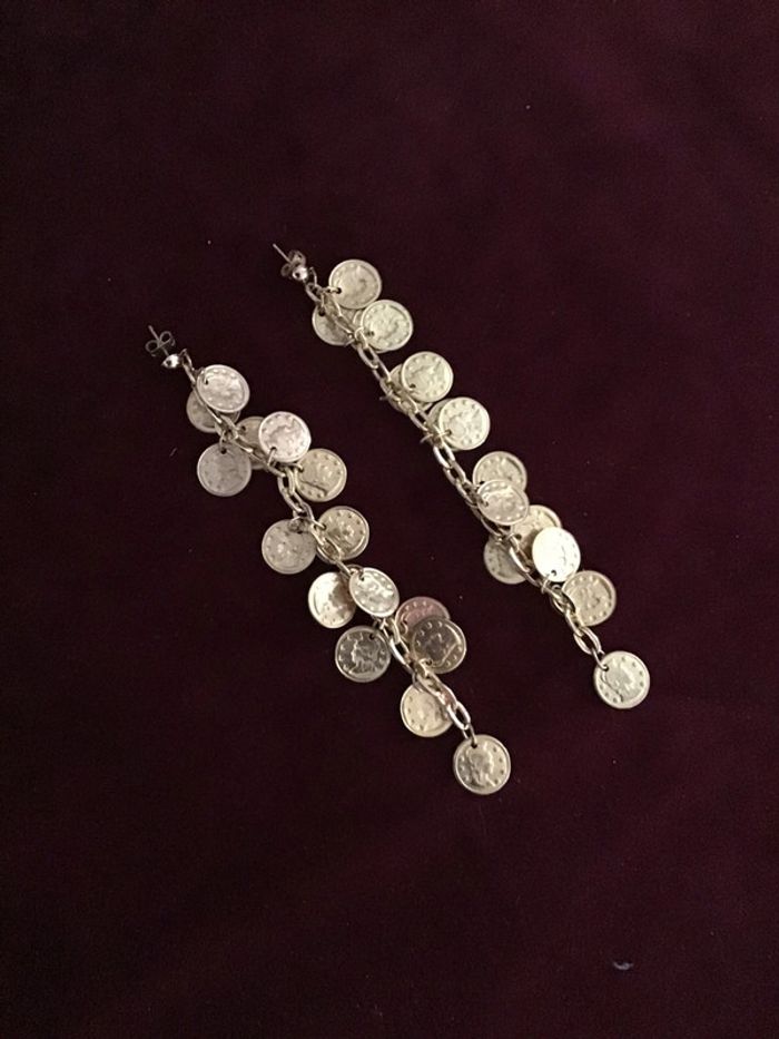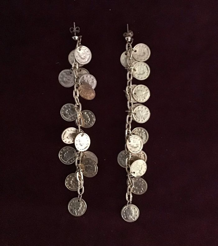Oreilles percées Longs pendants piécettes dorées Très légères et originales