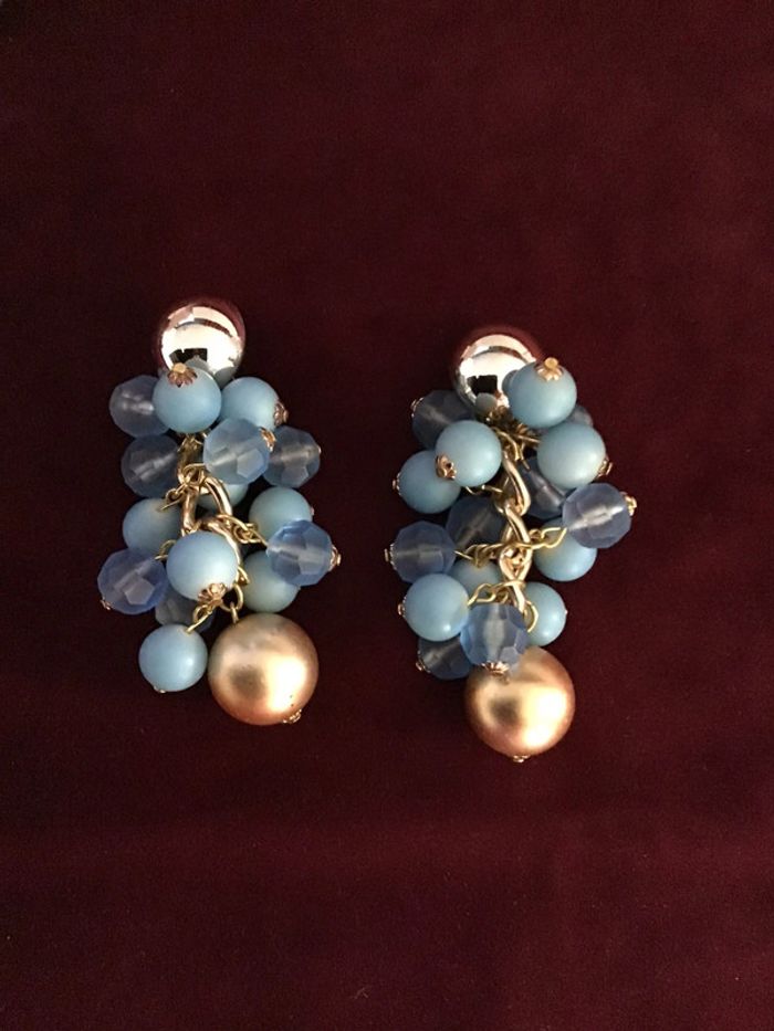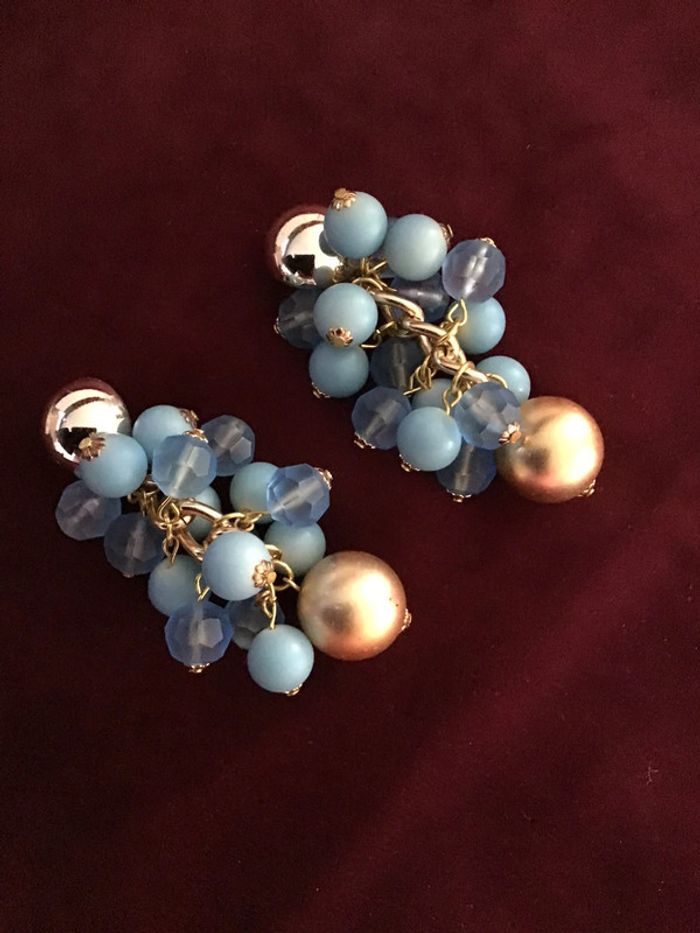 Beaux clips grappes perles camaïeu de bleu sur monture dorée Superbe rendu
