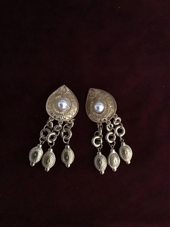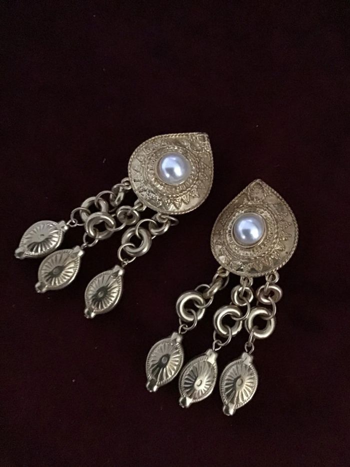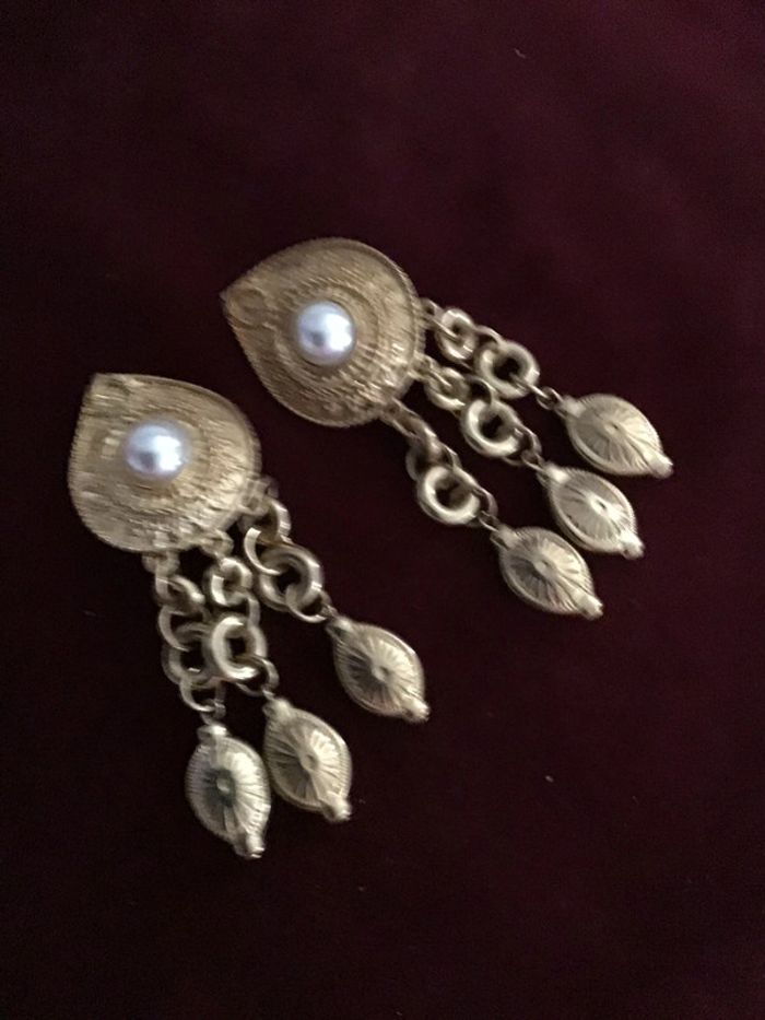 Clips très ouvragés ornés d’une perle façon culture, avec pendants ciselés Rendu très élégant