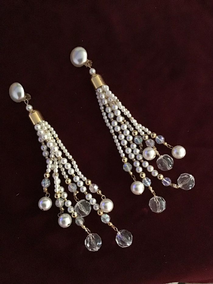 Longs pendants multiples perles nacrées, dorées taillées sur monture dorée. Magnifique rendu