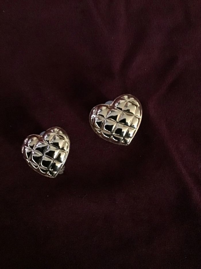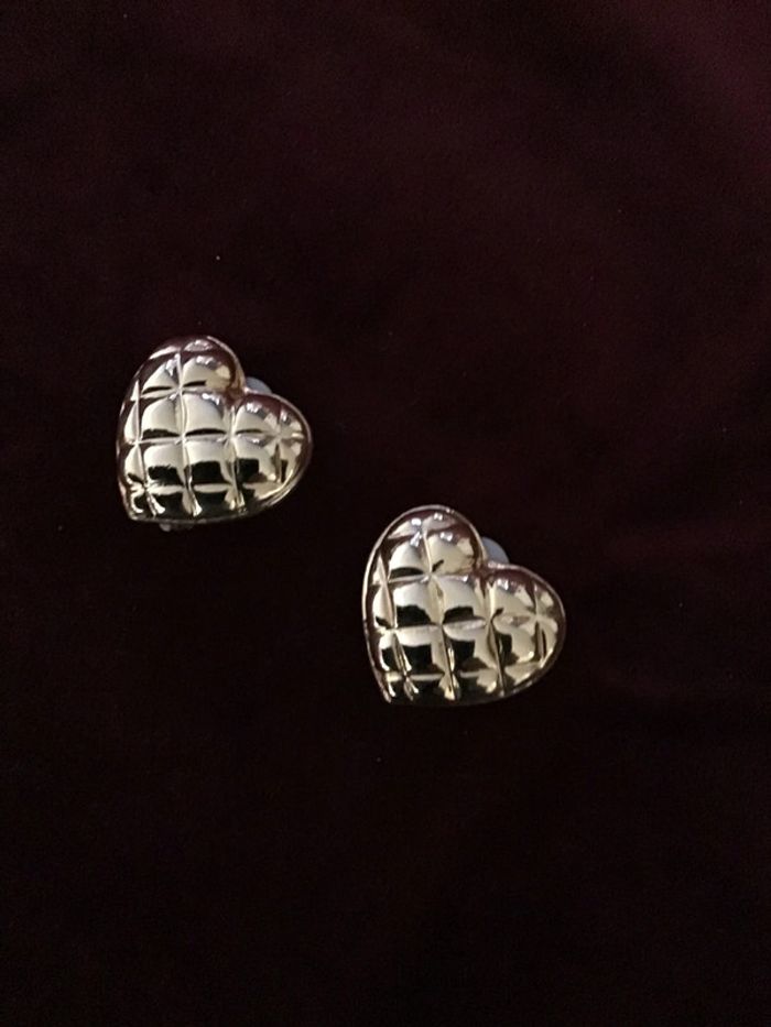 Années 80 Charmants coeurs dorés bombés relief quadrillé Jamais portés Sublime rendu